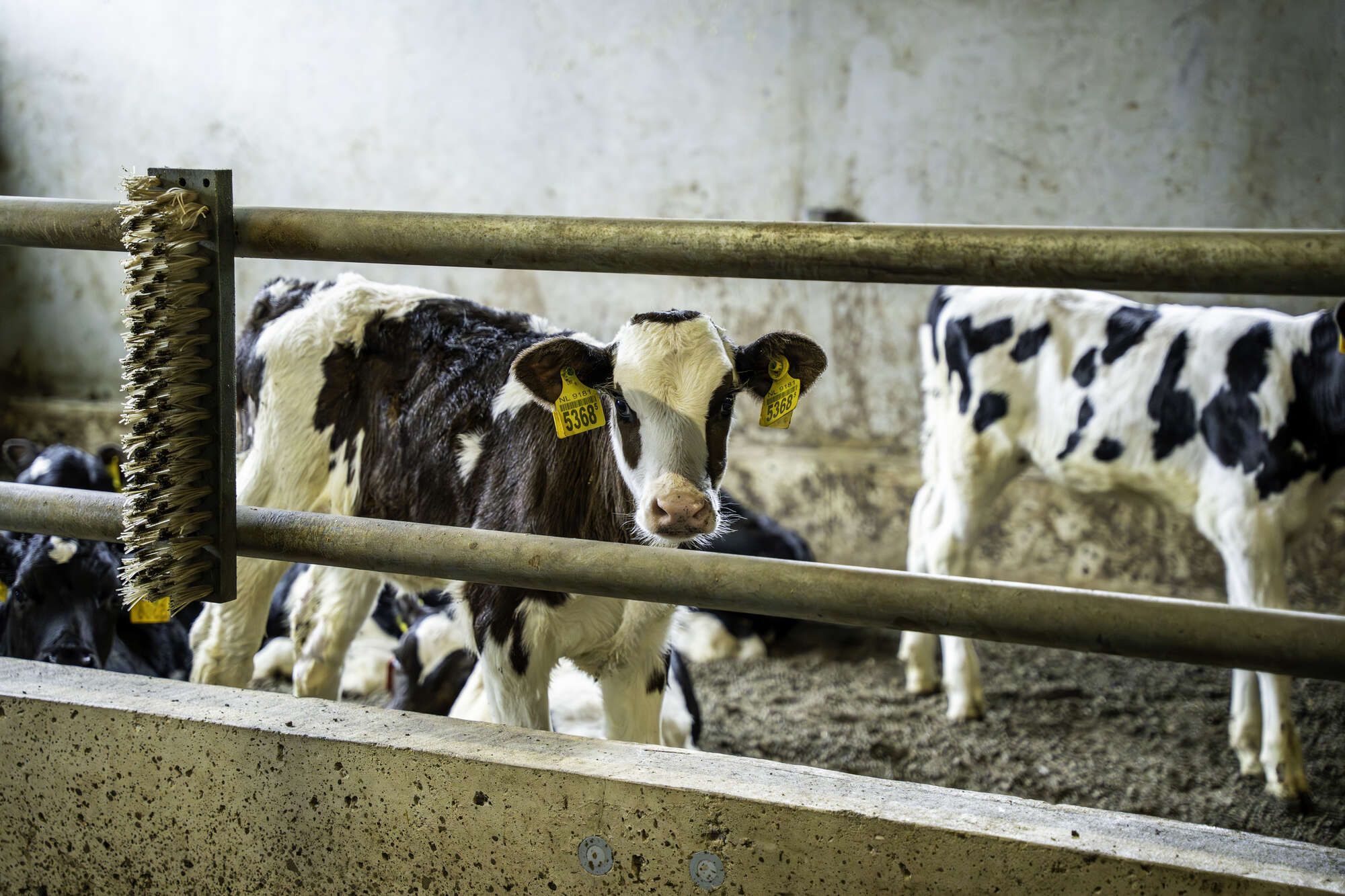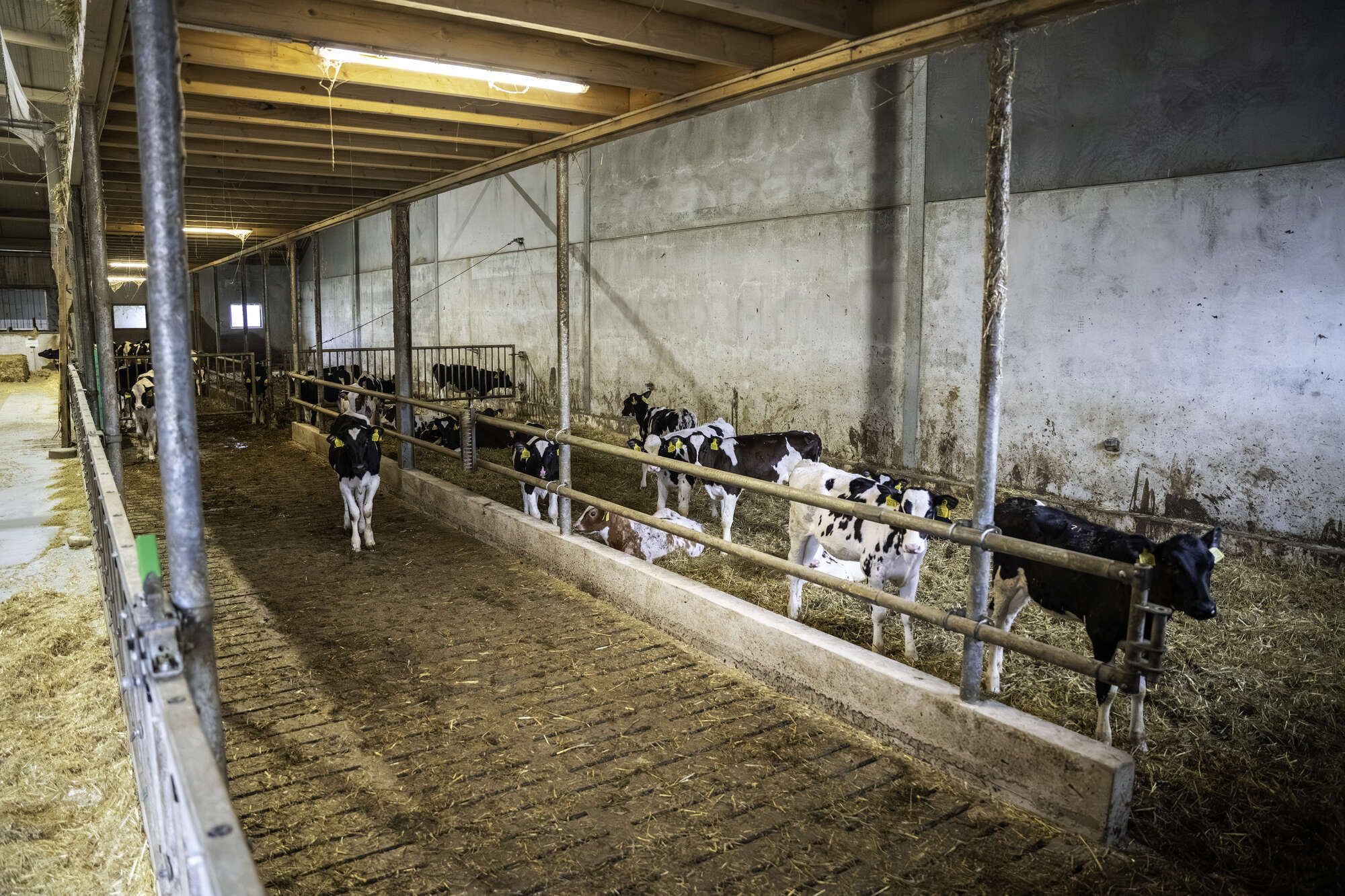 At a later age, they are housed in the cubicle barn for youngstock. When they are old enough for insemination, they move to another cubicle barn at the youngstock location, where they are eventually inseminated. Once calving approaches, they return to the dairy location.
